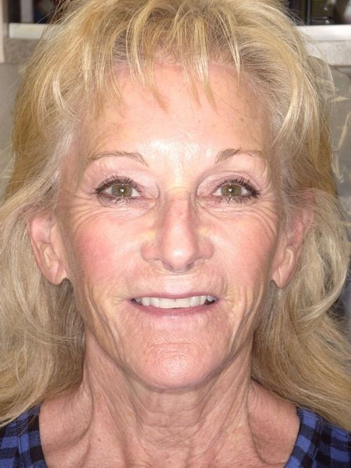 Cassie came to us with temporary dentures with ill-fitting and disproportionate teeth that didn't suite her features well, so we made a plan to get her smile the way she wanted. Dr. J ended up redesigning a temporary denture and placing six dental implants. We worked on her case in two stages - grafting and placing the implants, then restoring with zirconia and you can see the way her new smile suits her!